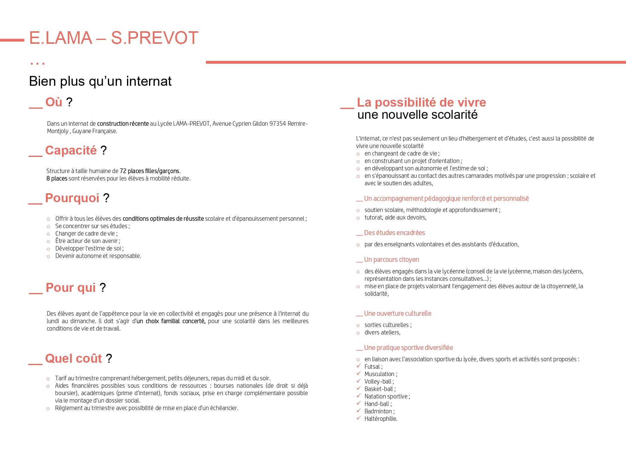 L’internat du lycée LAMA-PREVOT offre 72 places (36 garçons et 36 filles).